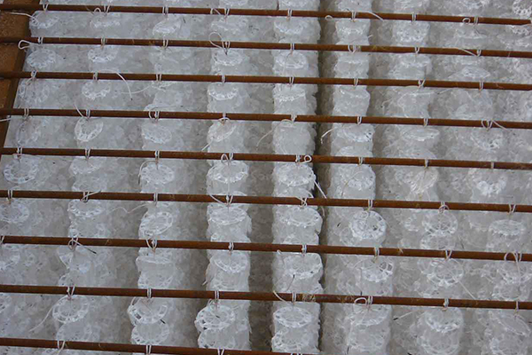 ? ? 生物填料不宜長期貯放在露天環境中,應避免紫外線直接照射及嚴寒冰凍,否則將使用其使用壽命,填料組裝吊掛時應拉緊,以免運轉時產生互繞,安裝完畢后,進清水浸泡,并進行短時間曝氣,使絲條得到大限度舒展,保證出水質量。